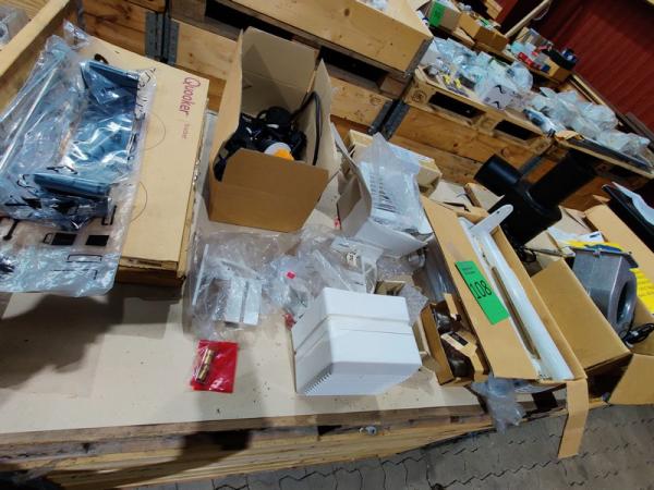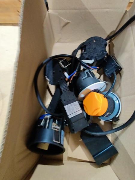 Står i 6650 Brørup. Diverse spot, udsugning, blæser, m.m. Mange dele. Ubrugte. Oprydning fra EL-Grosist + MOMS