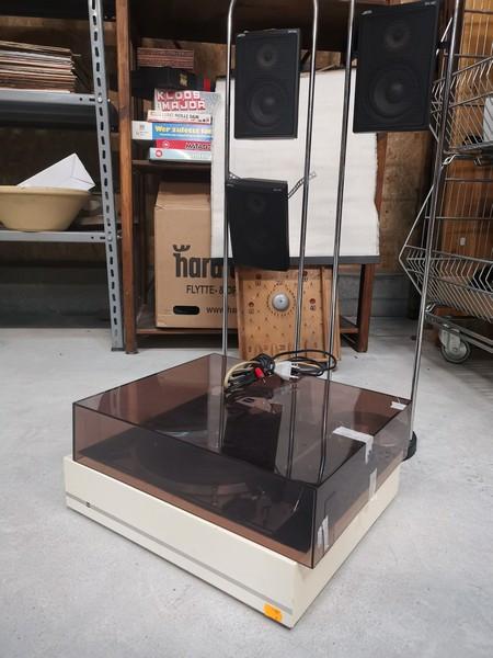 Dual 1216 PL pladespiller. Låget er en smule i stykker bagpå. Samt 3 stk. JAMO højtaler på stativ. Sat140. Uden kabler. H95 cm. Selve højtaleren måler 20 cm. i højden. Brugt, men ellers ok stand. Fra dødsbo. MOMSFRI