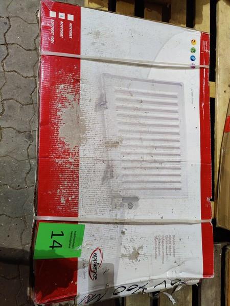 Står i 6650 Brørup. Radiator, oliefyldt. Med termostat. Brand: APPLIANCE. Model : AOV700MT. Kassen måler : 64 x 94 cm. Ubrugt. Oprydning fra EL-Grosist + MOMS