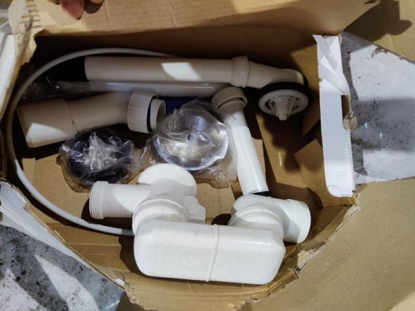 Står i 6650 Brørup. Brusekabine bund. Måler: 90 x 90 x 25 cm. Med 2 sæt justerbar fødder. Og med afløbs dele. Ubrugt. Oprydning fra EL-Grosist + MOMS