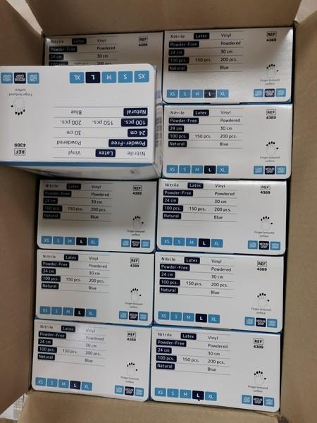 Latex handsker ABENA str. L, kasse med 10 pakker, 100 stk. handsker pr. pakke. I original emballage. +MOMS