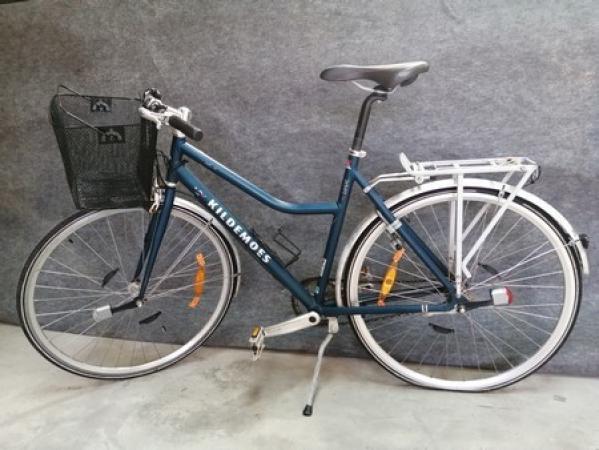 Kildemoes Logic 28, 28 tommer. Den er med 3 gear. Den er låst, har en smule rust. Ok stand, trænger til lidt luft i dækkene og et lille eftersyn. Brugt, salg for offentlig myndighed. MOMSFRI