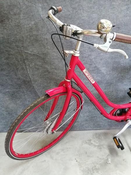 Norden damecykel. Den er med 7 gear. Den er låst. Den har en smule rust. Ok stand, trænger til lidt luft i dækkene og et lille eftersyn. Brugt, salg for offentlig myndighed. MOMSFRI