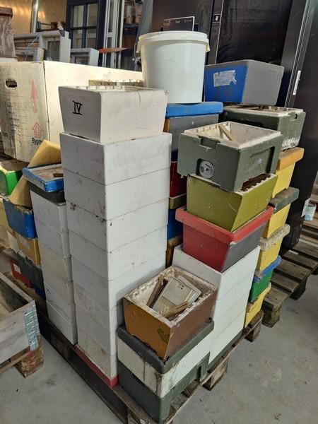 Parti biavler magasiner. Ca 30 stk magasiner. Samt bundstykker og rammer, antal ukendt. Samt mange små overvintringskasser og en røgslører. Alt er brugt og trænger til rengøring. Fra dødsbo og MOMSFRI